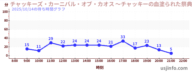 • チャッキーズ・カーニバル・オブ・カオス ~チャッキーの血塗られた祭典~$B$N(B2025年10月14日の待ち時間
