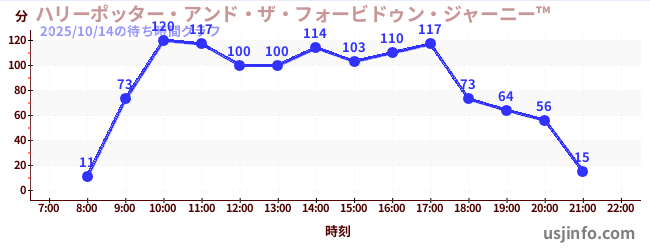 • ハリーポッター・アンド・ザ・フォービドゥン・ジャーニー™$B$N(B2025年10月14日の待ち時間