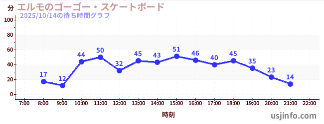 • エルモのゴーゴー・スケートボード$B$N(B2025年10月14日の待ち時間