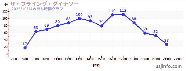 • ザ・フライング・ダイナソー$B$N(B2025年10月14日の待ち時間