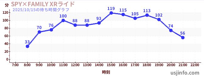 • SPY×FAMILY XRライド$B$N(B2025年10月15日の待ち時間
