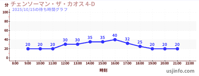 • チェンソーマン・ザ・カオス 4-D$B$N(B2025年10月15日の待ち時間