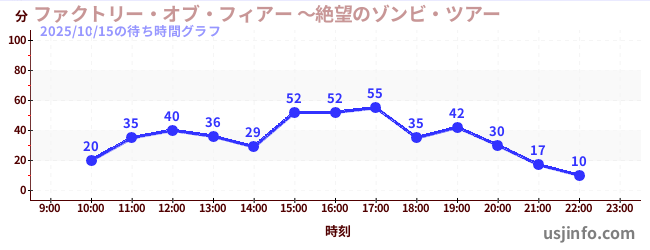 • ファクトリー・オブ・フィアー ~絶望のゾンビ・ツアー$B$N(B2025年10月15日の待ち時間