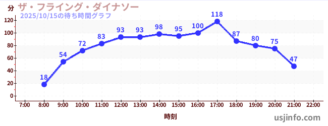 • ザ・フライング・ダイナソー$B$N(B2025年10月15日の待ち時間