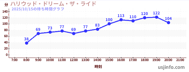 • ハリウッド・ドリーム・ザ・ライド$B$N(B2025年10月15日の待ち時間