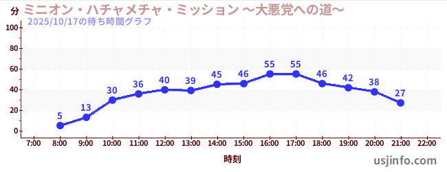 • ミニオン・ハチャメチャ・ミッション ~大悪党への道~$B$N(B2025年10月17日の待ち時間