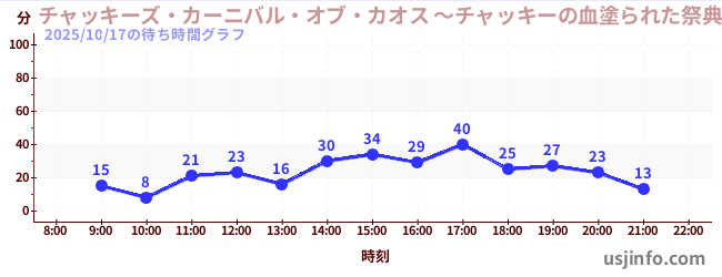 • チャッキーズ・カーニバル・オブ・カオス ~チャッキーの血塗られた祭典~$B$N(B2025年10月17日の待ち時間