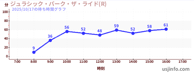 • ジュラシック・パーク・ザ・ライド(R)$B$N(B2025年10月17日の待ち時間