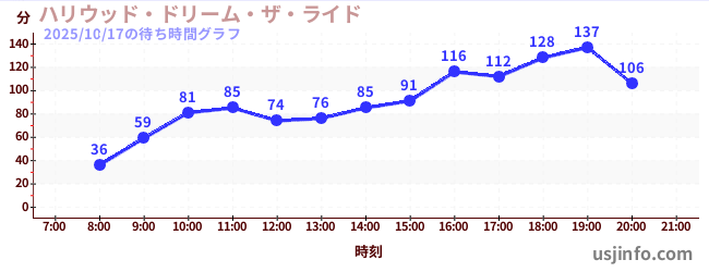 • ハリウッド・ドリーム・ザ・ライド$B$N(B2025年10月17日の待ち時間
