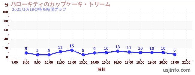 • ハローキティのカップケーキ・ドリーム$B$N(B2025年10月19日の待ち時間