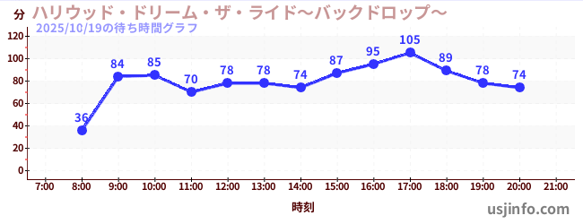 • ハリウッド・ドリーム・ザ・ライド〜バックドロップ〜$B$N(B2025年10月19日の待ち時間