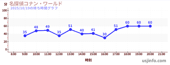 • 名探偵コナン・ワールド$B$N(B2025年10月19日の待ち時間