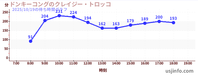 • ドンキーコングのクレイジー・トロッコ$B$N(B2025年10月19日の待ち時間