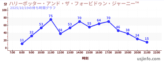 • ハリーポッター・アンド・ザ・フォービドゥン・ジャーニー™$B$N(B2025年10月19日の待ち時間