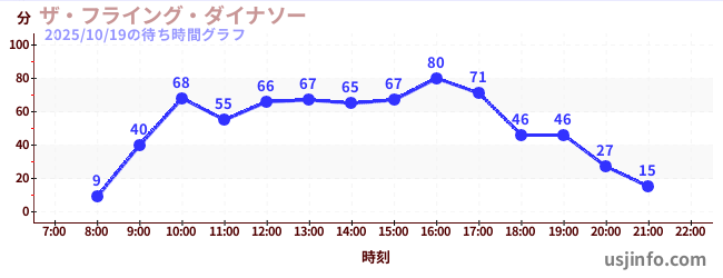 • ザ・フライング・ダイナソー$B$N(B2025年10月19日の待ち時間