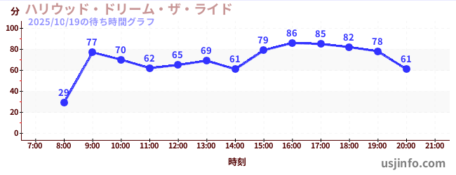 • ハリウッド・ドリーム・ザ・ライド$B$N(B2025年10月19日の待ち時間