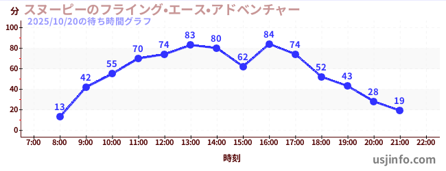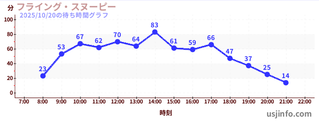 • フライング・スヌーピー$B$N(B2025年10月20日の待ち時間