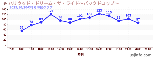 • ハリウッド・ドリーム・ザ・ライド〜バックドロップ〜$B$N(B2025年10月20日の待ち時間