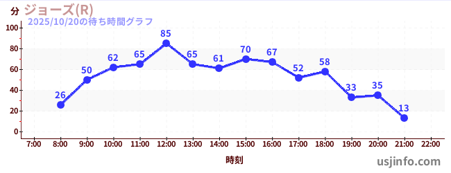 • ジョーズ(R)$B$N(B2025年10月20日の待ち時間