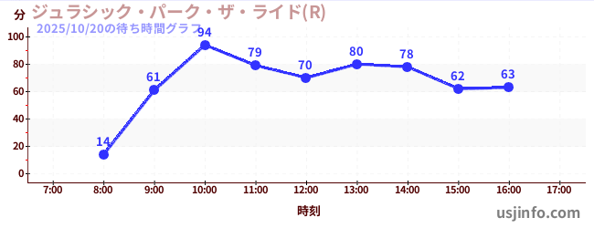 • ジュラシック・パーク・ザ・ライド(R)$B$N(B2025年10月20日の待ち時間