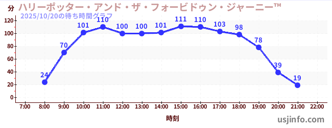 • ハリーポッター・アンド・ザ・フォービドゥン・ジャーニー™$B$N(B2025年10月20日の待ち時間