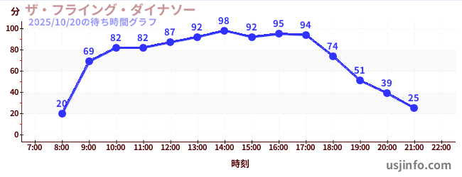 • ザ・フライング・ダイナソー$B$N(B2025年10月20日の待ち時間
