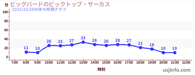 • ビッグバードのビックトップ・サーカス$B$N(B2025年10月20日の待ち時間
