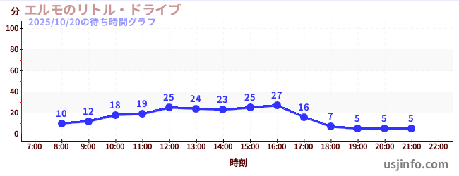 • エルモのリトル・ドライブ$B$N(B2025年10月20日の待ち時間