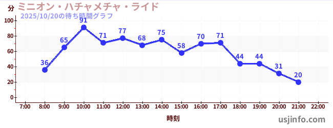 • ミニオン・ハチャメチャ・ライド$B$N(B2025年10月20日の待ち時間