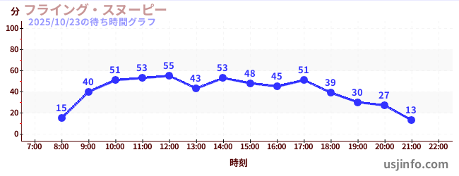 • フライング・スヌーピー$B$N(B2025年10月23日の待ち時間