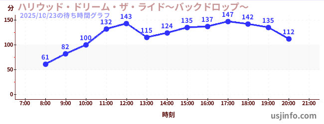 • ハリウッド・ドリーム・ザ・ライド〜バックドロップ〜$B$N(B2025年10月23日の待ち時間