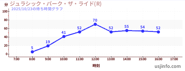 • ジュラシック・パーク・ザ・ライド(R)$B$N(B2025年10月23日の待ち時間