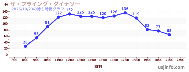 • ザ・フライング・ダイナソー$B$N(B2025年10月23日の待ち時間