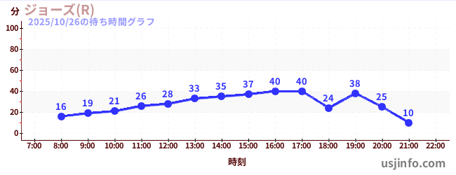 • ジョーズ(R)$B$N(B2025年10月26日の待ち時間