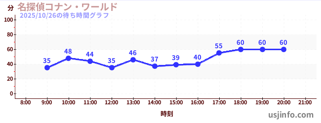 • 名探偵コナン・ワールド$B$N(B2025年10月26日の待ち時間