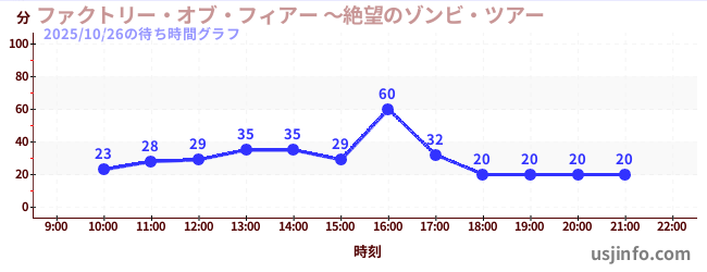• ファクトリー・オブ・フィアー ~絶望のゾンビ・ツアー$B$N(B2025年10月26日の待ち時間