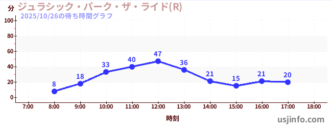 • ジュラシック・パーク・ザ・ライド(R)$B$N(B2025年10月26日の待ち時間