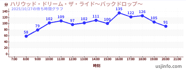 • ハリウッド・ドリーム・ザ・ライド〜バックドロップ〜$B$N(B2025年10月27日の待ち時間