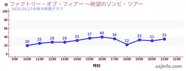 • ファクトリー・オブ・フィアー ~絶望のゾンビ・ツアー$B$N(B2025年10月27日の待ち時間