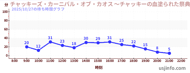 • チャッキーズ・カーニバル・オブ・カオス ~チャッキーの血塗られた祭典~$B$N(B2025年10月27日の待ち時間