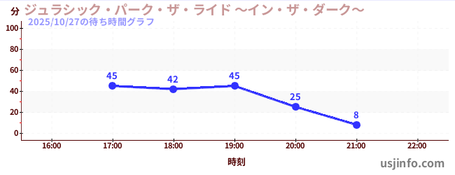 • ジュラシック・パーク・ザ・ライド ~イン・ザ・ダーク~$B$N(B2025年10月27日の待ち時間