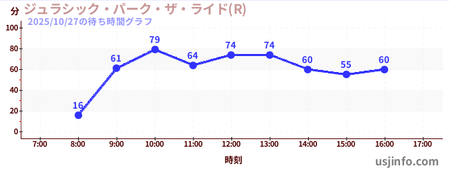 • ジュラシック・パーク・ザ・ライド(R)$B$N(B2025年10月27日の待ち時間