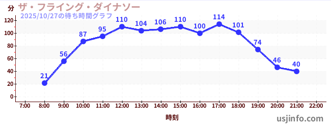• ザ・フライング・ダイナソー$B$N(B2025年10月27日の待ち時間