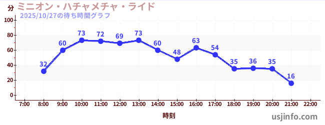 • ミニオン・ハチャメチャ・ライド$B$N(B2025年10月27日の待ち時間