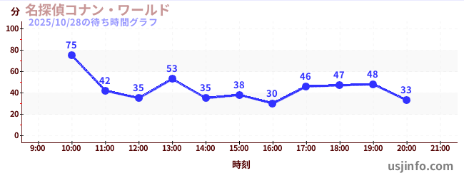 • 名探偵コナン・ワールド$B$N(B2025年10月28日の待ち時間