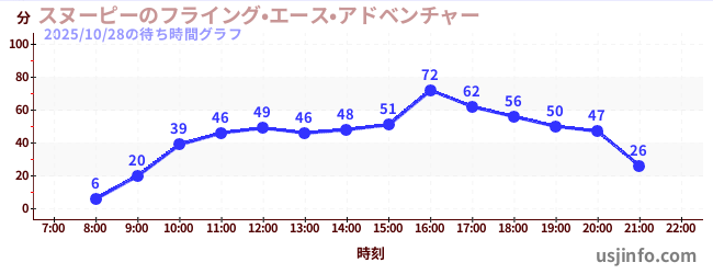 • スヌーピーのフライング•エース•アドベンチャー$B$N(B2025年10月28日の待ち時間