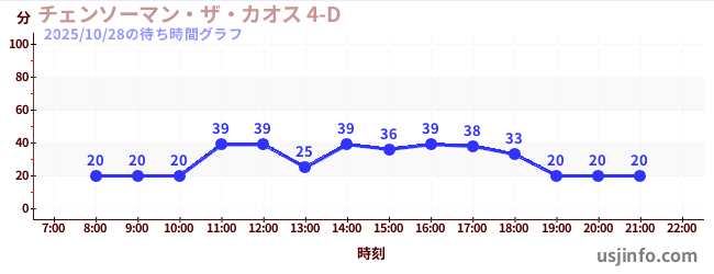 • チェンソーマン・ザ・カオス 4-D$B$N(B2025年10月28日の待ち時間