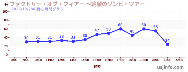 • ファクトリー・オブ・フィアー ~絶望のゾンビ・ツアー$B$N(B2025年10月28日の待ち時間