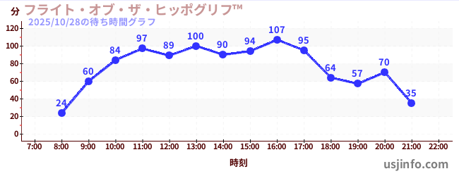 • フライト・オブ・ザ・ヒッポグリフ™$B$N(B2025年10月28日の待ち時間
