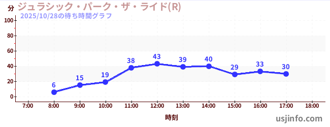 • ジュラシック・パーク・ザ・ライド(R)$B$N(B2025年10月28日の待ち時間